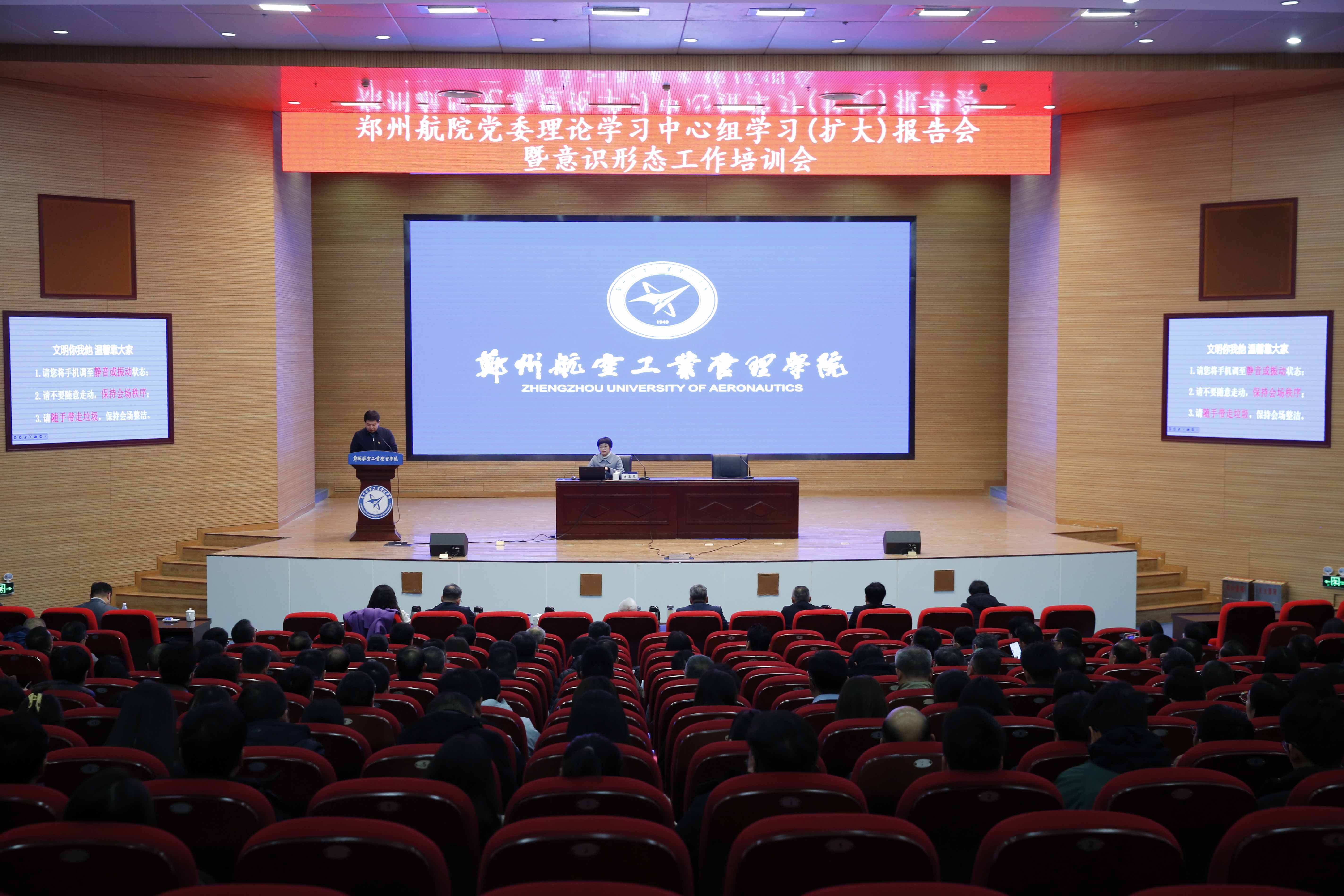 11月25日,我校召开党委理论学习中心组学习(扩大)报告会暨意识形态工作培训会,特邀中共郑州市委党校史玉琴教授来校作专题报告。全体在校校领导出席会议。会议由党委副书记、工会主席李捷主持。