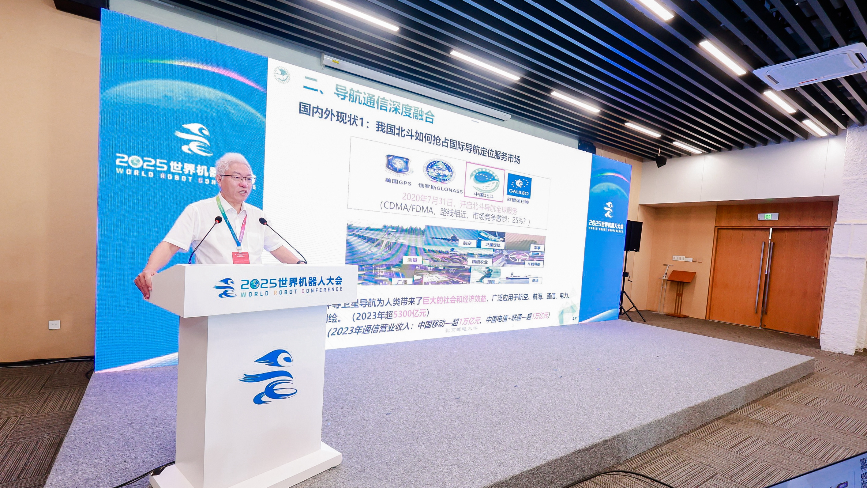 报告交流环节,邓中亮以“导航通信深度融合与万物智联发展机遇”为题作报告,介绍了其团队最新提出的北斗-5G NTN(非地面网络)亚米级至厘米级全域定位技术。他指出,该技术融合了北斗卫星的高精度定位能力与5G NTN的广覆盖特性,通过创新的算法与系统架构,可实现厘米级精度的全域定位。这一技术突破为机器人提供了前所未有的空间坐标感知能力,仿佛为机器人植入了“空间坐标感知神经”,使其能够在复杂环境中实现精准定位与导航,将极大地推动万物智联的发展,为智能机器人、自动驾驶、智慧城市等领域带来发展机遇。