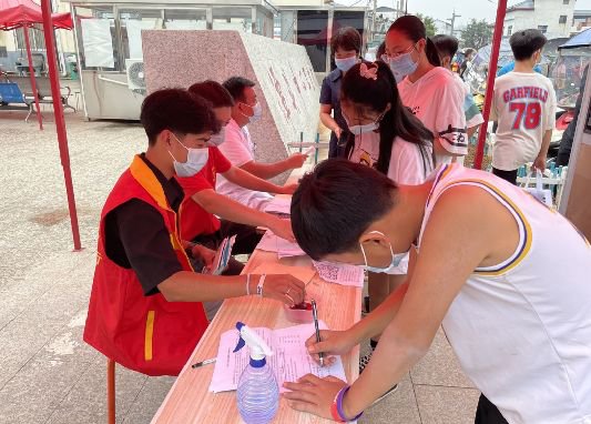 当疫情再次出现,土木建筑学院2019级学生王御卿志愿协助家乡村委会进行全民核酸检测。