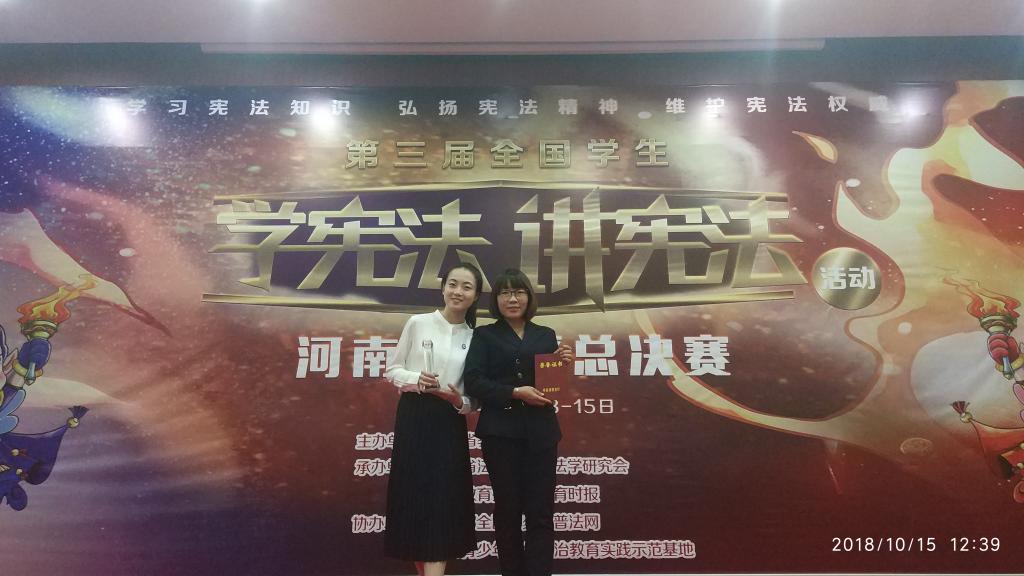 我校学子斩获河南省“学宪法 讲宪法”演讲大赛特等奖 时间:2018年10月17日 作者:法学院 程怡宁 编辑:新闻中心 点击: 10月14-15日,河南省第三届“学宪法 讲宪法”演讲大赛决赛在郑州举行。我校法学院学生田雅囡荣获特等奖,法学院教师王娟娟被评为“优秀指导教师”。 比赛历时近4个月,分为校内选拔、河南省教育厅视频选拔和现场总决赛三个赛程,共有10名选手从100余名视频参赛选手中胜出,晋级最终的现场总决赛。经过激烈角逐,田雅囡以其独特的演讲风格和出色的舞台表现获得评委一致好评,斩获特等奖。 王娟娟老师在演讲稿的写作、口语表达技巧、演讲服饰礼仪、临场应变能力等方面对田雅囡进行了全方位训练和指导,被评为“优秀指导教师”。 据悉,“学宪法 讲宪法”演讲比赛已连续举办三年,此次获奖是我校继第二届参赛选手丁瀚之后再次问鼎总决赛的特等奖。 2018年10月17日 校内新闻 上一条:【创青春】学生科创之路上的领航人——访飞行器创新实验室团队指导老师刘战合 下一条:中国航空工业集团有限公司郑州航院专场招聘会举行 【关闭】